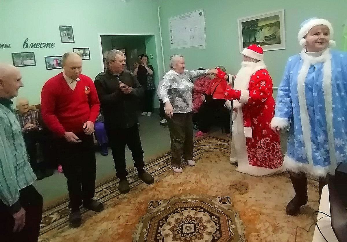 24.12.2025В рамках республиканской акции "От всей души" отделение круглосуточного пребывания для граждан пожилого возраста и инвалидов Центра навестили Дедушка Мороз и Снегурочка из Веркудского сельского дома культуры.